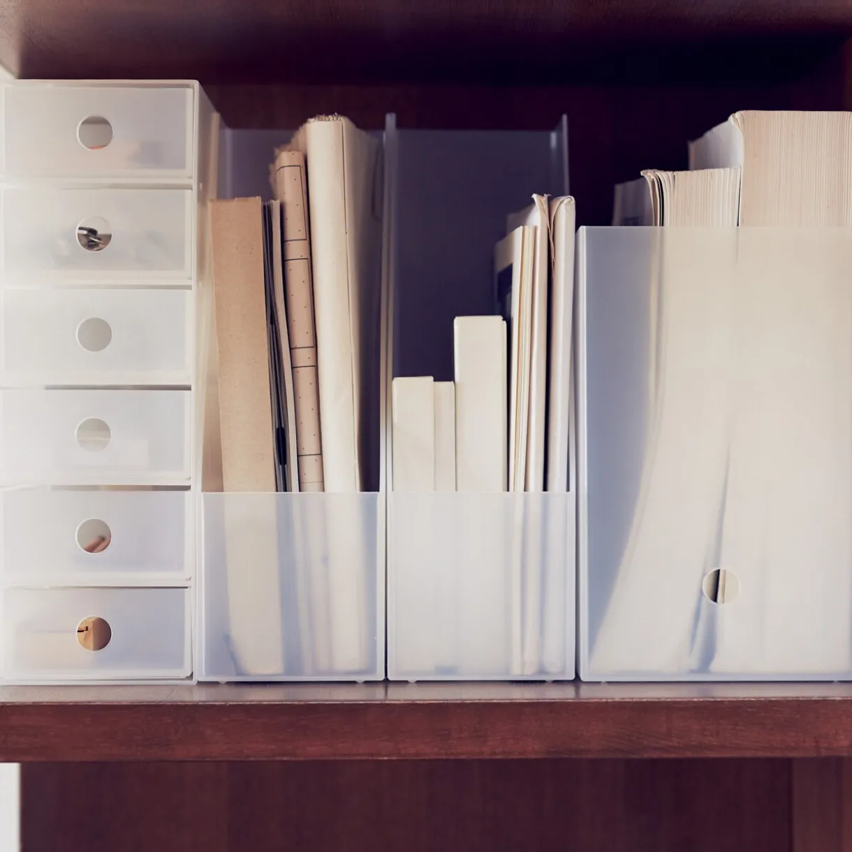 27.7 x 10 x 31.6cm. Boîte archives biais en polypropylène pour documents A4.