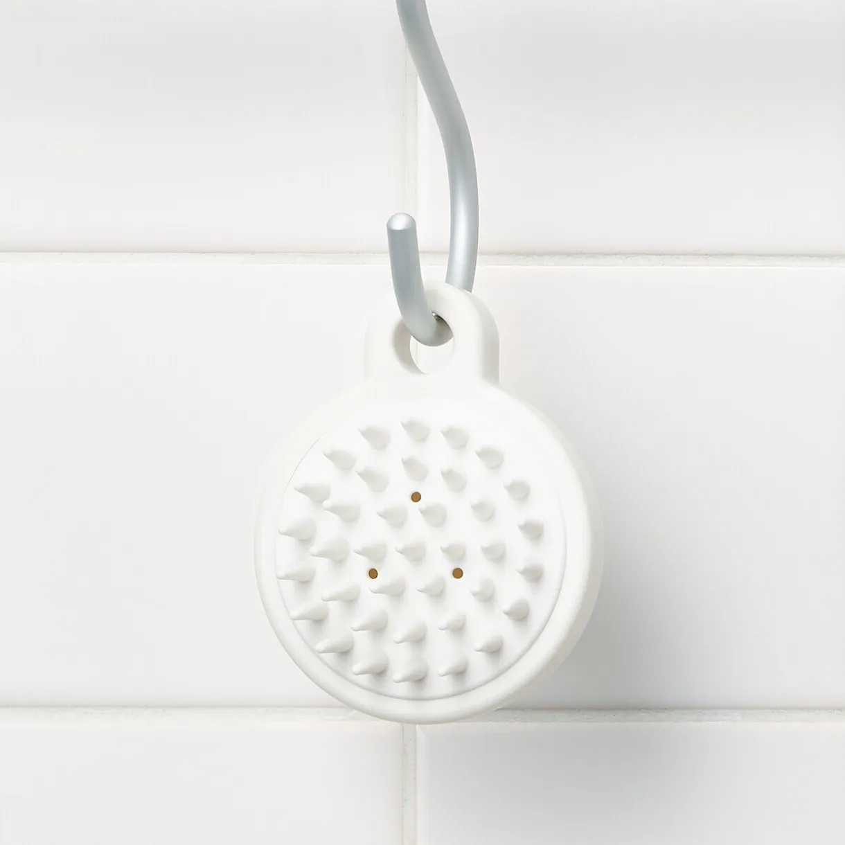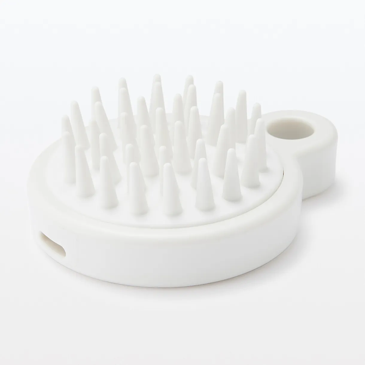 Brosse en polypropylène blanc pour masser et stimuler le cuir chevelu pendant le shampoing.