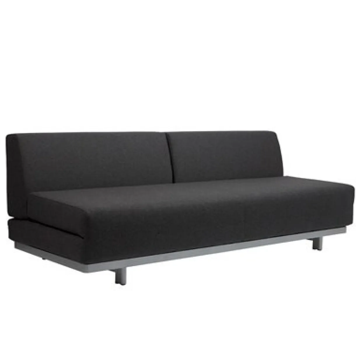 Housse en feutrine gris anthracite déhoussable et lavable à sec. Pieds en acier laqué couleur aluminium, diamètre 2.5cm.