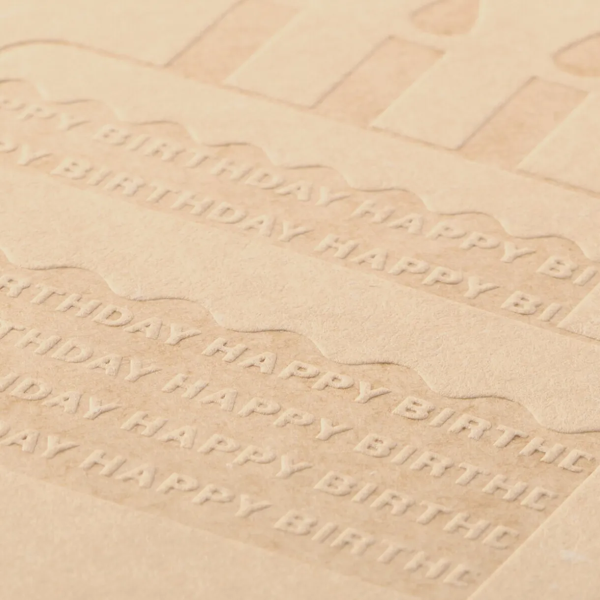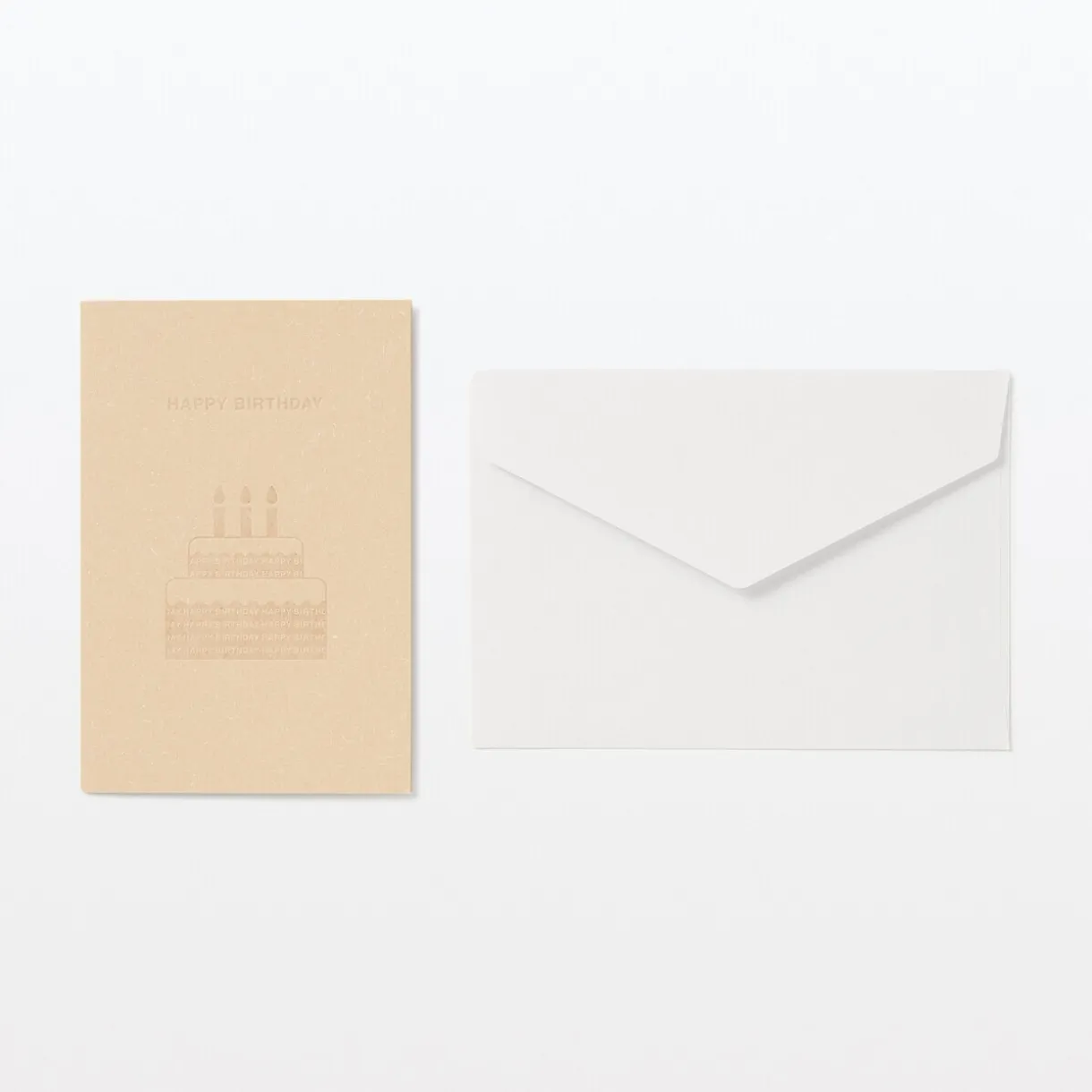 Une carte message pliée avec un gâteau à deux étages en relief portant l« inscription « HAPPY BIRTHDAY ». L« intérieur de la carte est vierge, vous pouvez donc la décorer librement. Comprend une enveloppe pour la carte.