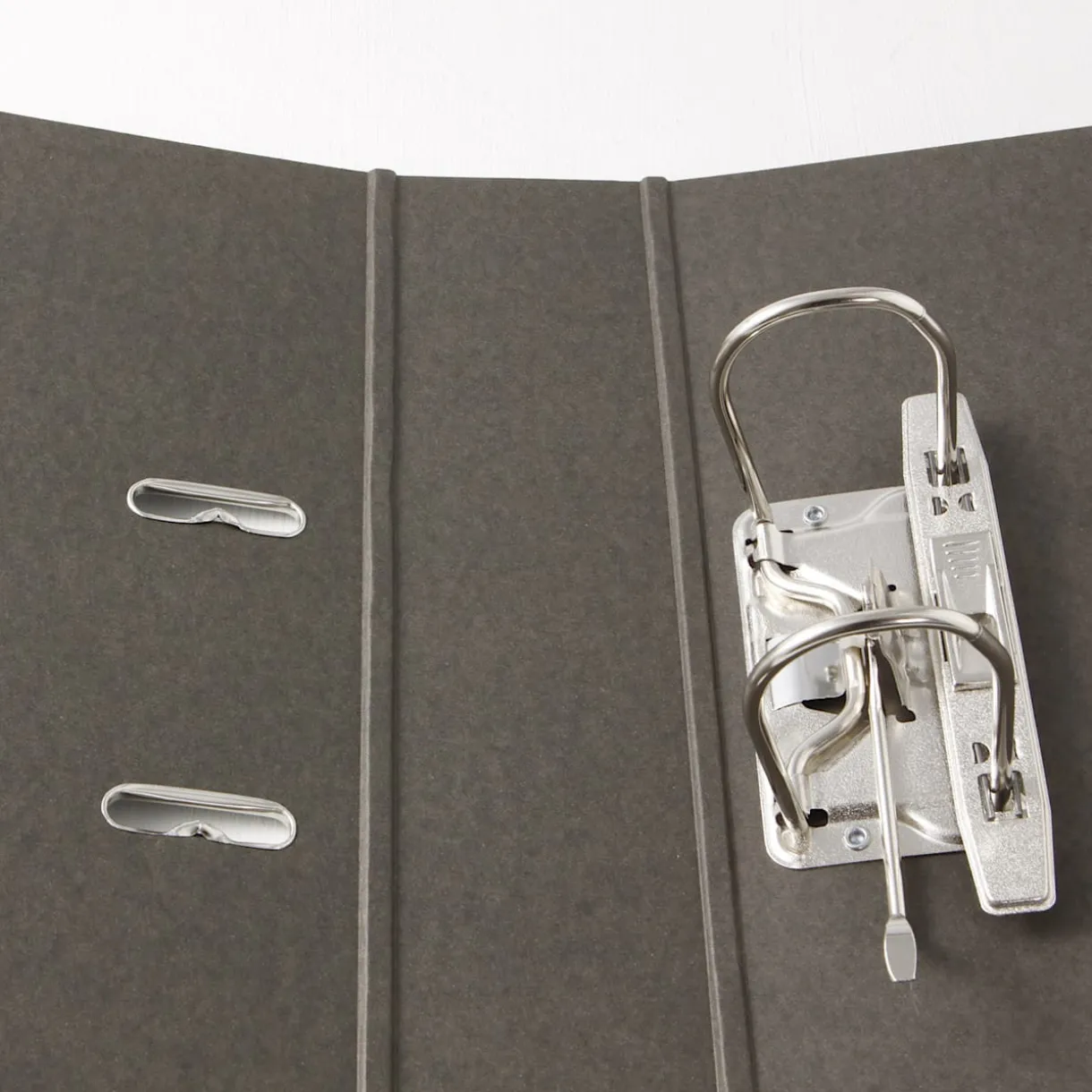 Classeur A4 anthracite à levier. 100% recyclé. 2 anneaux. Coins renforcés. 31x28x7cm.