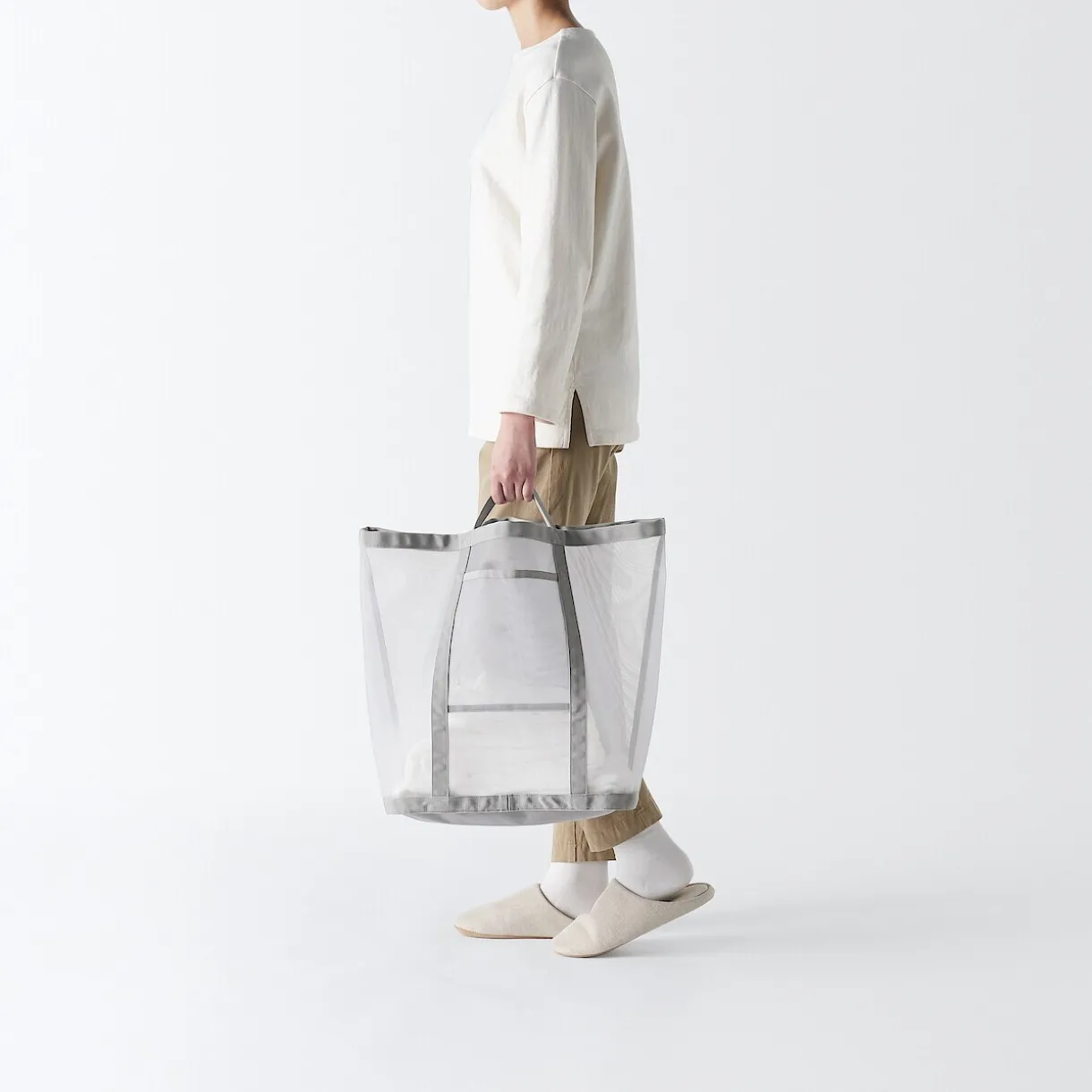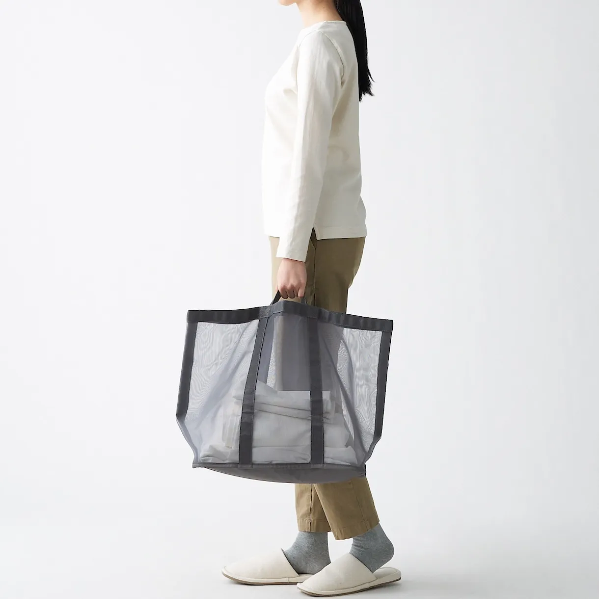 Le tissu en filet empêche le linge de moisir. Léger, avec des poignées latérales, elle est facile à porter d’une seule main.