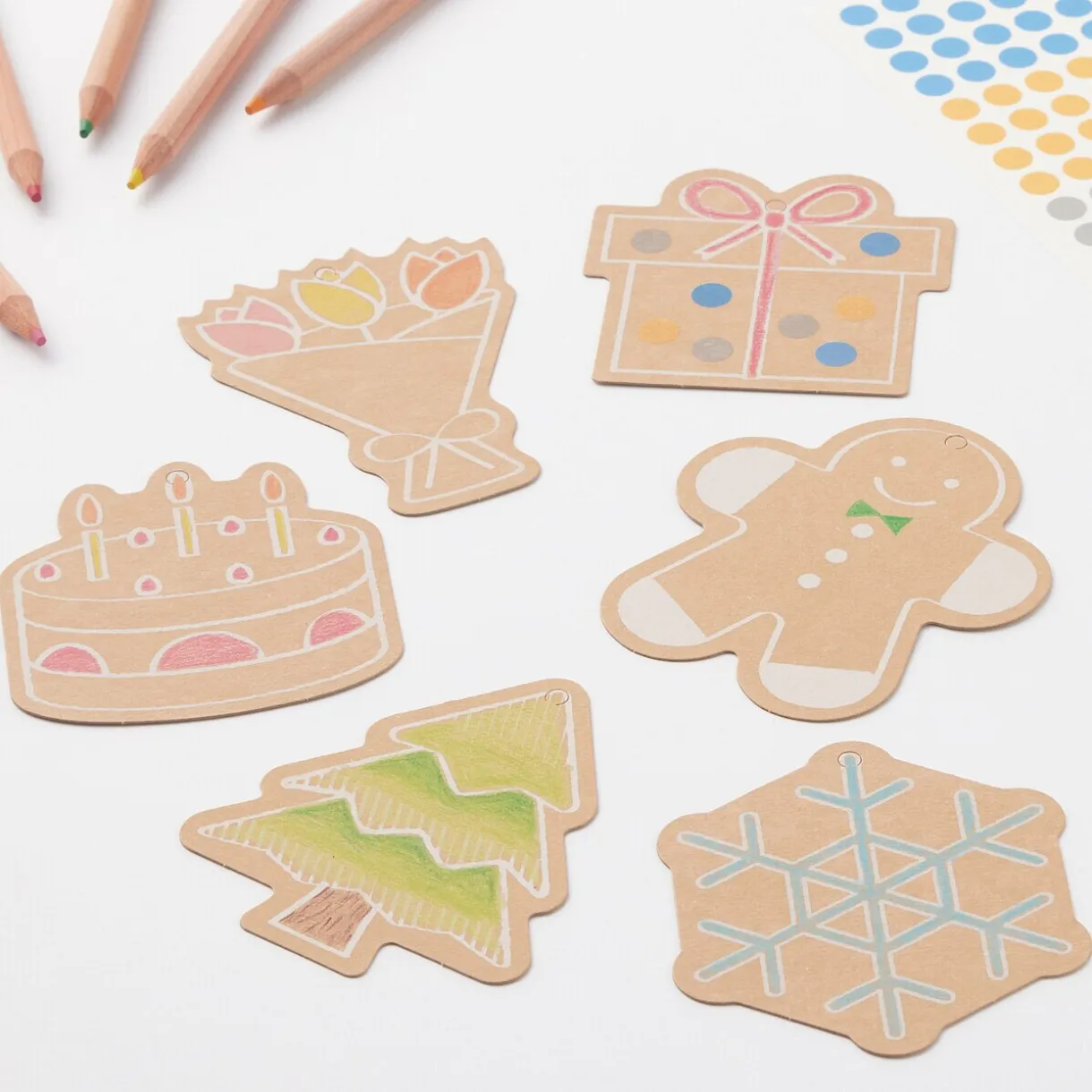 – Pré-perforés : prêts à être attachés à des cadeaux ou à des emballages.
