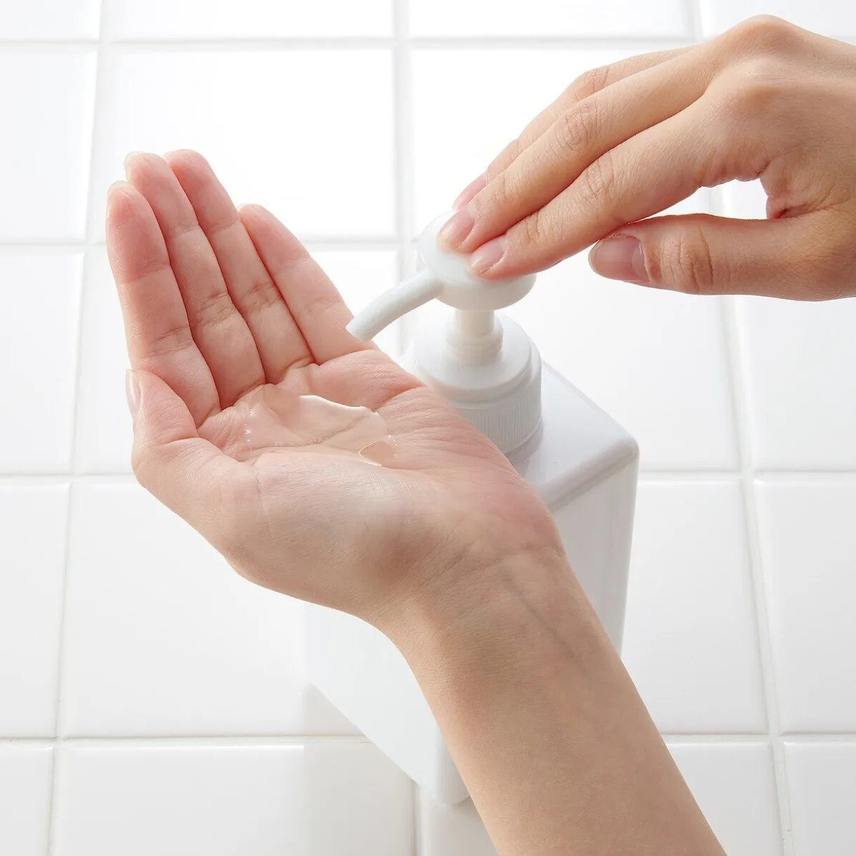 Flacon pratique pour recharger du savon, du shampooing ou de l’après‐shampooing.Blanc, 67,5 x 67,5 x Hauteur 152 mm (175 mm lorsque la buse est relevée)