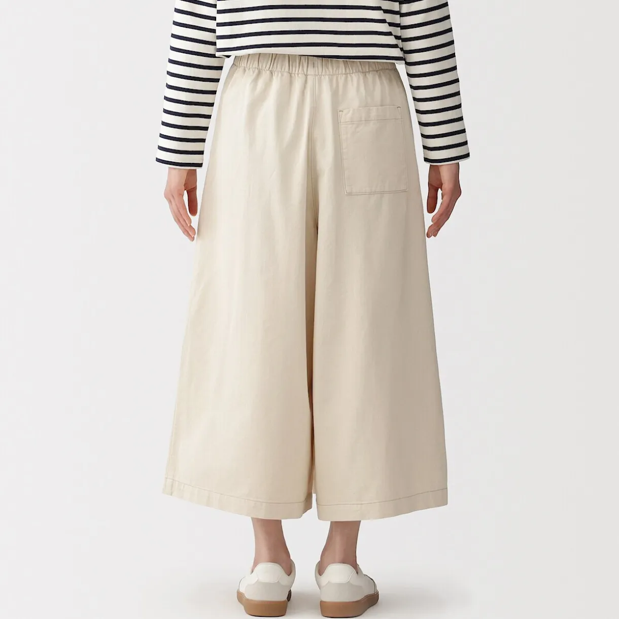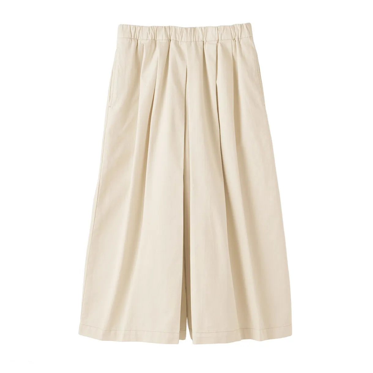 Faite d’un tissu à mailles douces, cette jupe-culotte offre une coupe large et décontractée, ouverte et libre, combinant l’élégance d’une jupe avec l’aisance d’un pantalon.