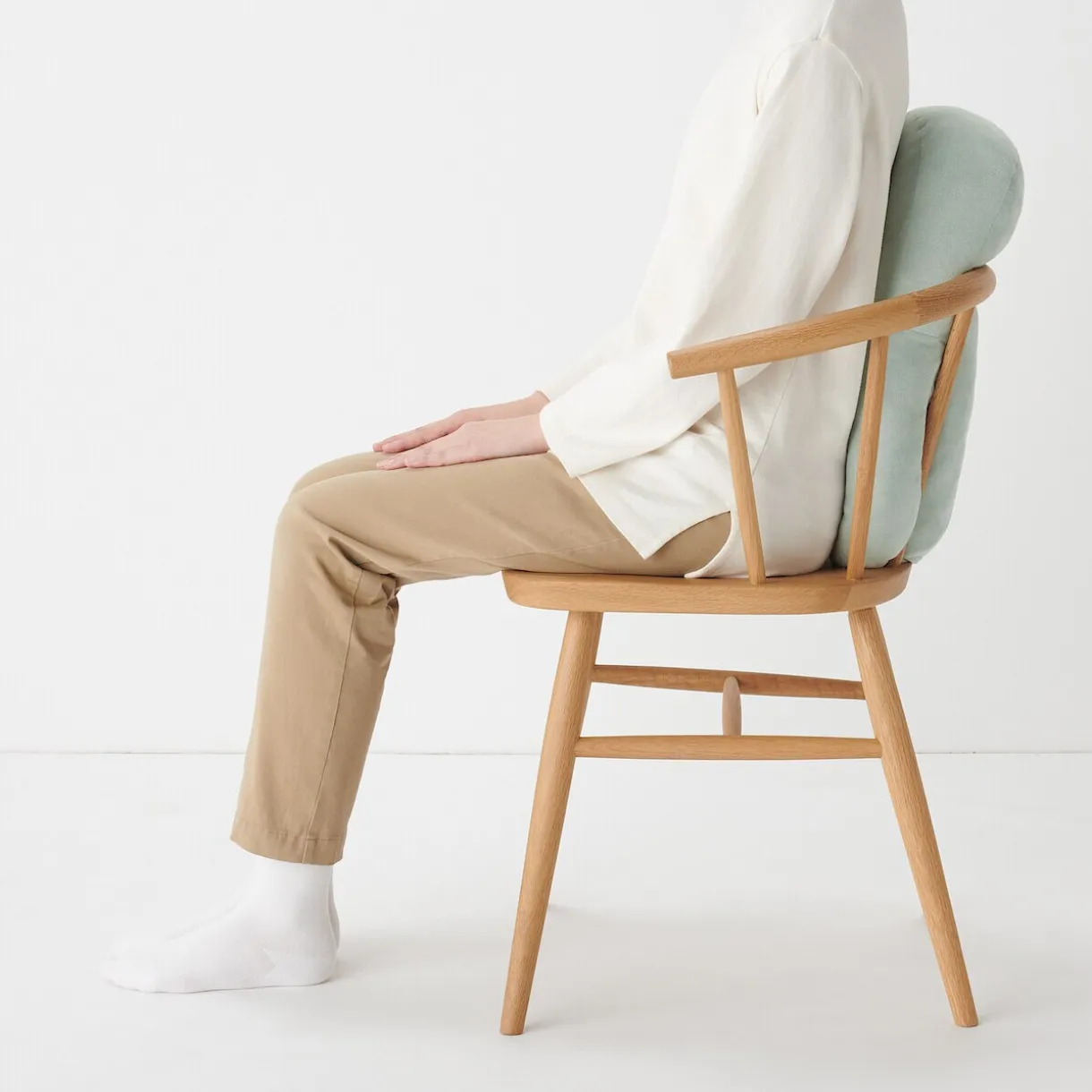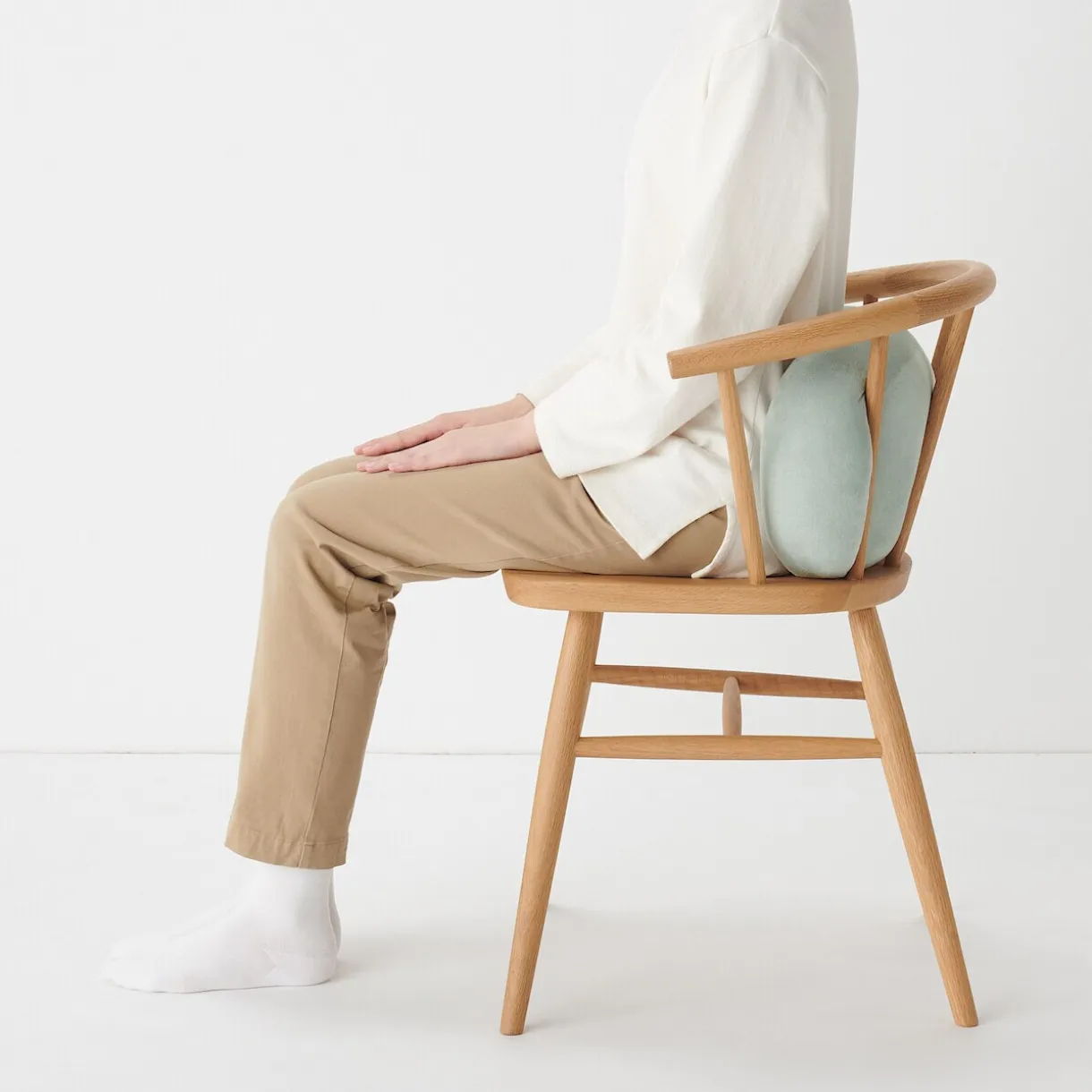 ‐ Placé verticalement sur une chaise, le coussin s’étend vers le haut et soutient la taille et le dos