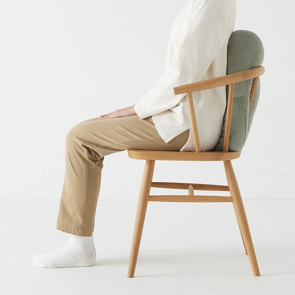 ‐ Placé horizontalement sur une chaise, le coussin s’étend sur les côtés et soutient les bras