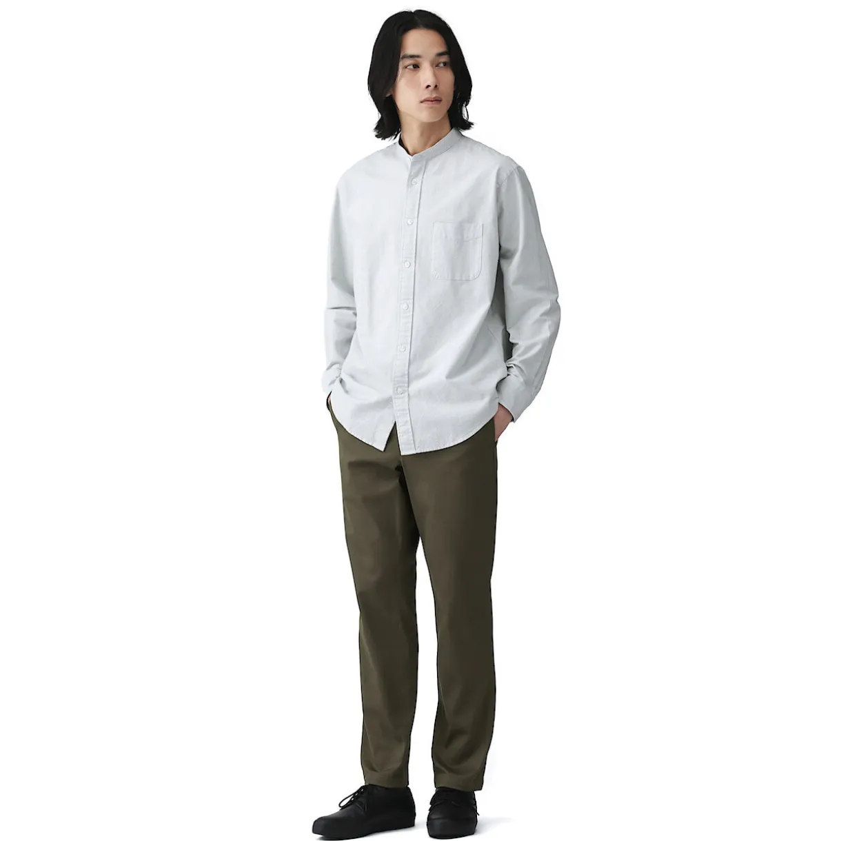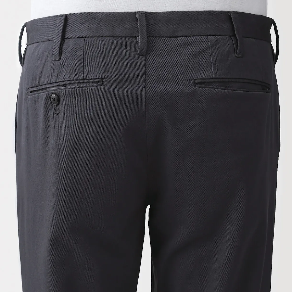 Les chinos sont un best‐seller de MUJI. Ce modèle classique, tant par sa coupe que par sa couleur, est fabriqué dans une matière extensible confortable pour une plus grande liberté de mouvement.