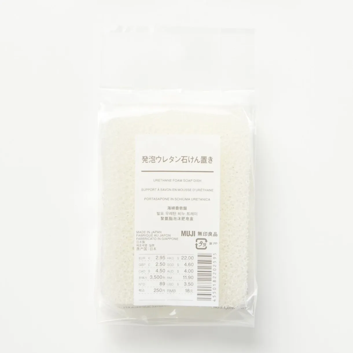 Porte‐savon en mousse d’uréthane pour faciliter le drainage.