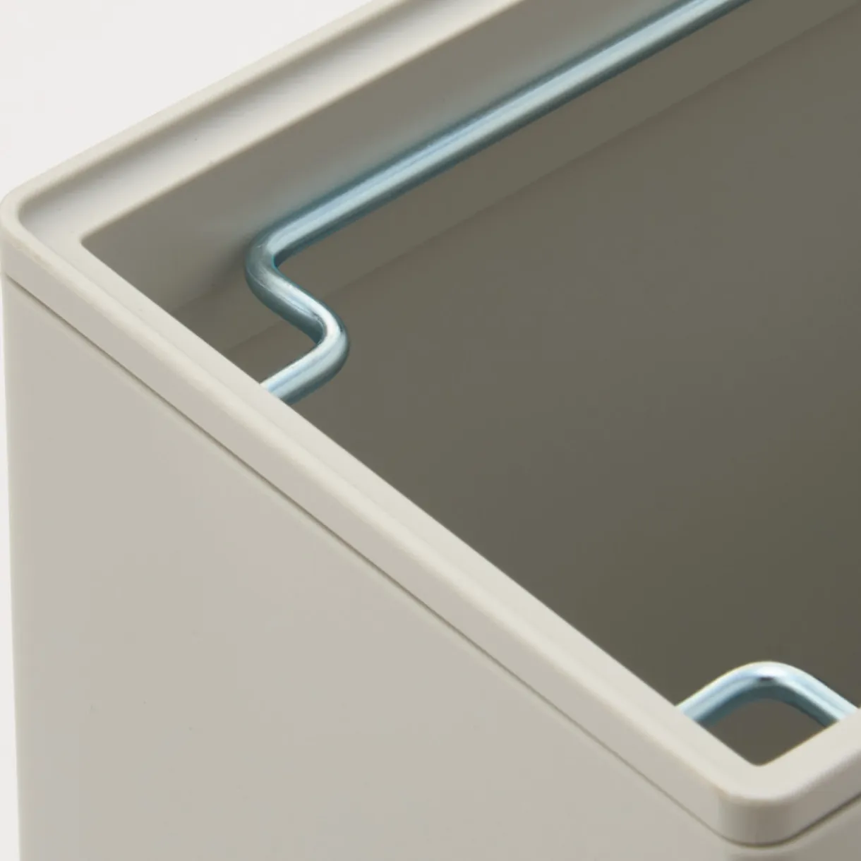 Cette poubelle s’adapte facilement aux coins. Elle inclut un couvercle qui peut être retiré facilement et un cadre en métal pour soutenir le sac poubelle.