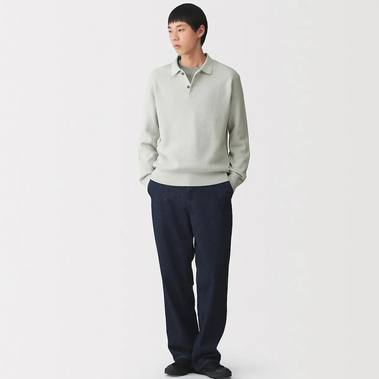 Ce pull polo est fabriqué à partir d’un mélange de coton doux et confortable, ce qui le rend facile à porter au quotidien en tant que simple couche.