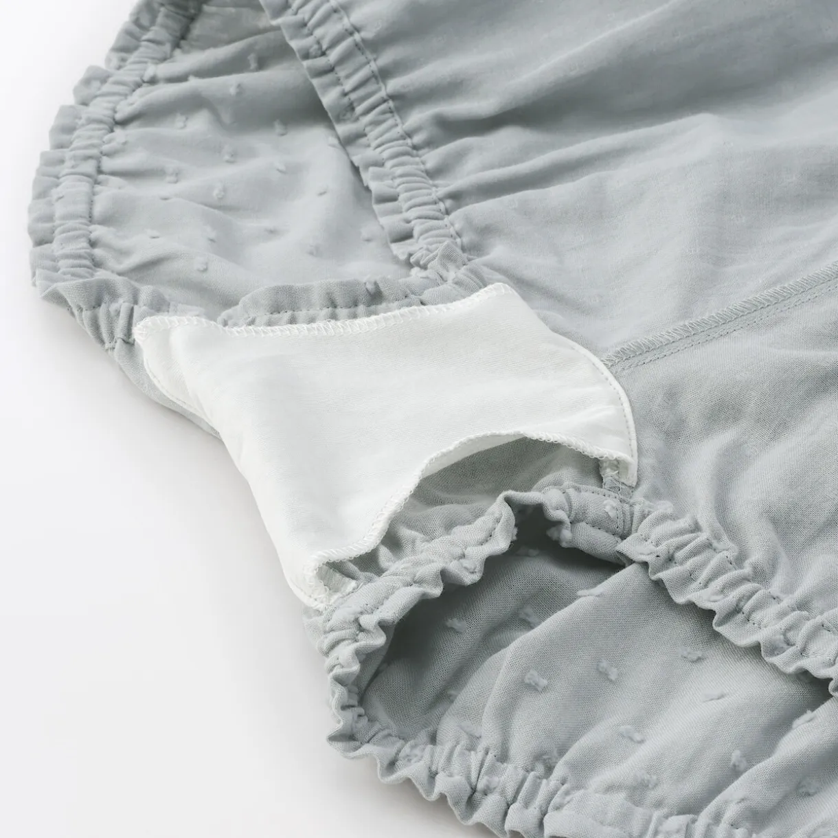 – Douce double gaze avec pois dobby texturés