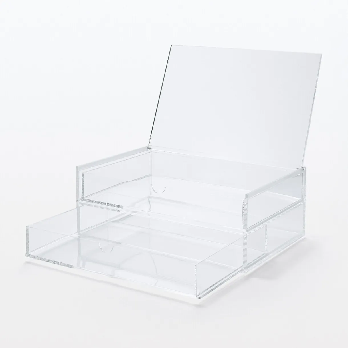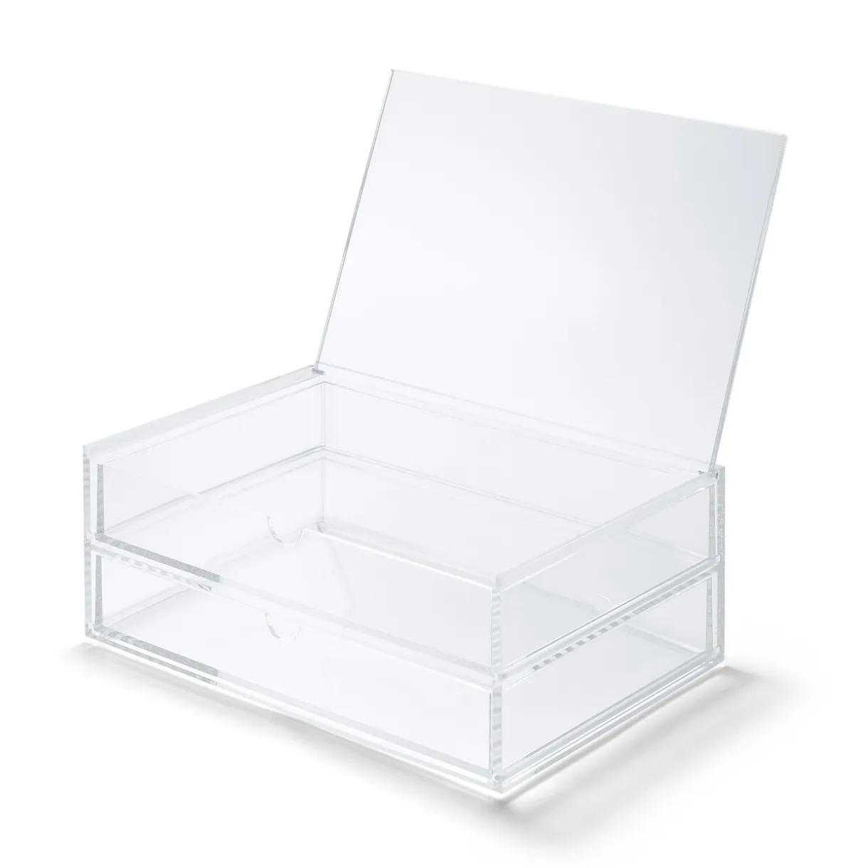 Boite 2 tiroirs avec couvercle. Taille L. Dimensions :L 25.6 x P 16.8 x H 9.5cm.