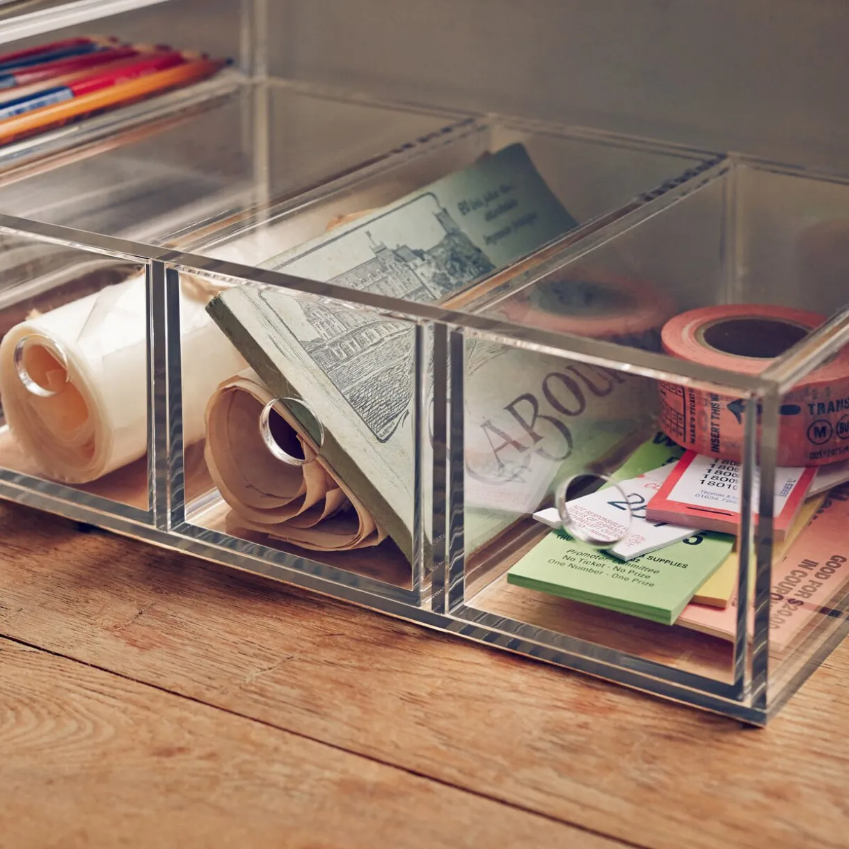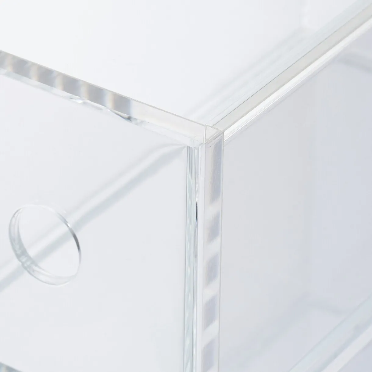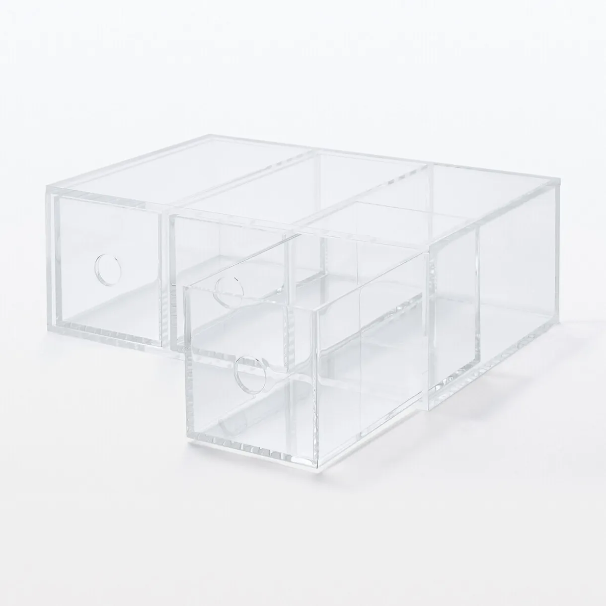 Compartiment en acrylique 3 tiroirs. Peut être utilisé verticalement ou horizontalement.Position verticale : largeur 8.6cm x longueur 17cm x hauteur 25.2cm.