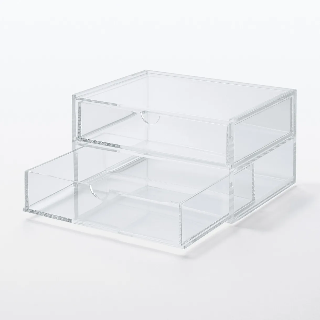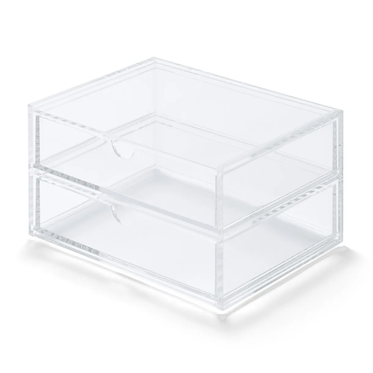 Boite en acrylique 2 tiroirs.Idéal pour ranger vos bijoux, votre maquillage et tout ce dont vous avez besoin à porté de mains.Dimensions: L: 17.5 x P: 13 x H: 9.5cm
