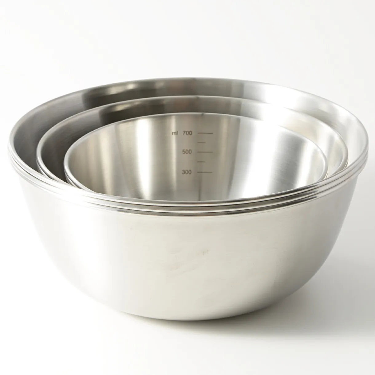 Nous avons revu la forme de nos bols en acier inoxydable afin qu’ils puissent désormais être empilés proprement dans la même taille, et que nos tamis s’intègrent parfaitement à l’intérieur. Acier inoxydable 18‐8, avec mesures imprimées à l’intérieur du bol.Diamètre 19cm x hauteur 8cmS’adapte avec la passoire