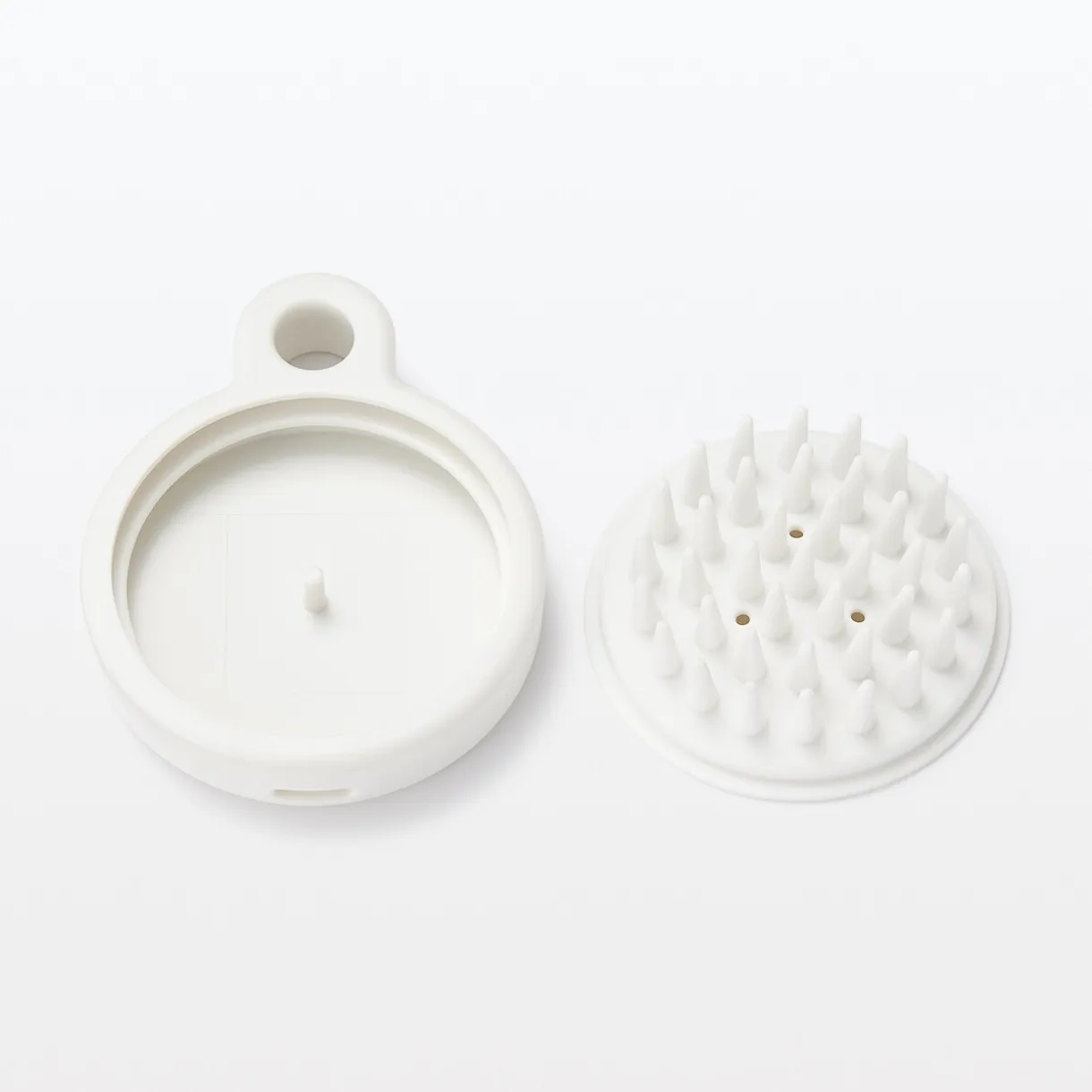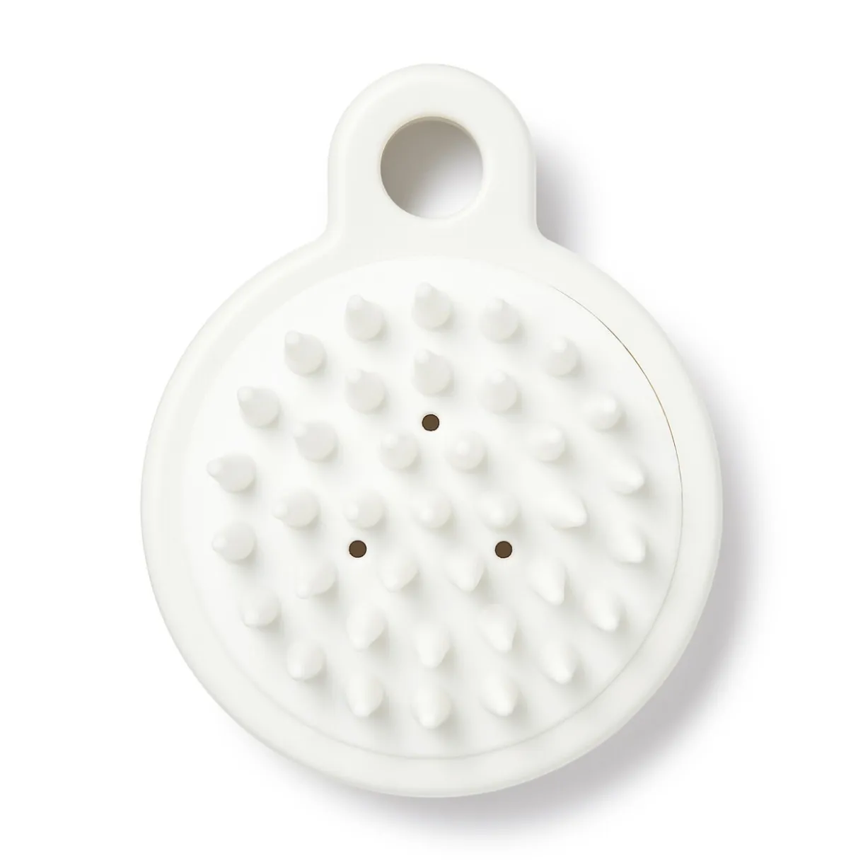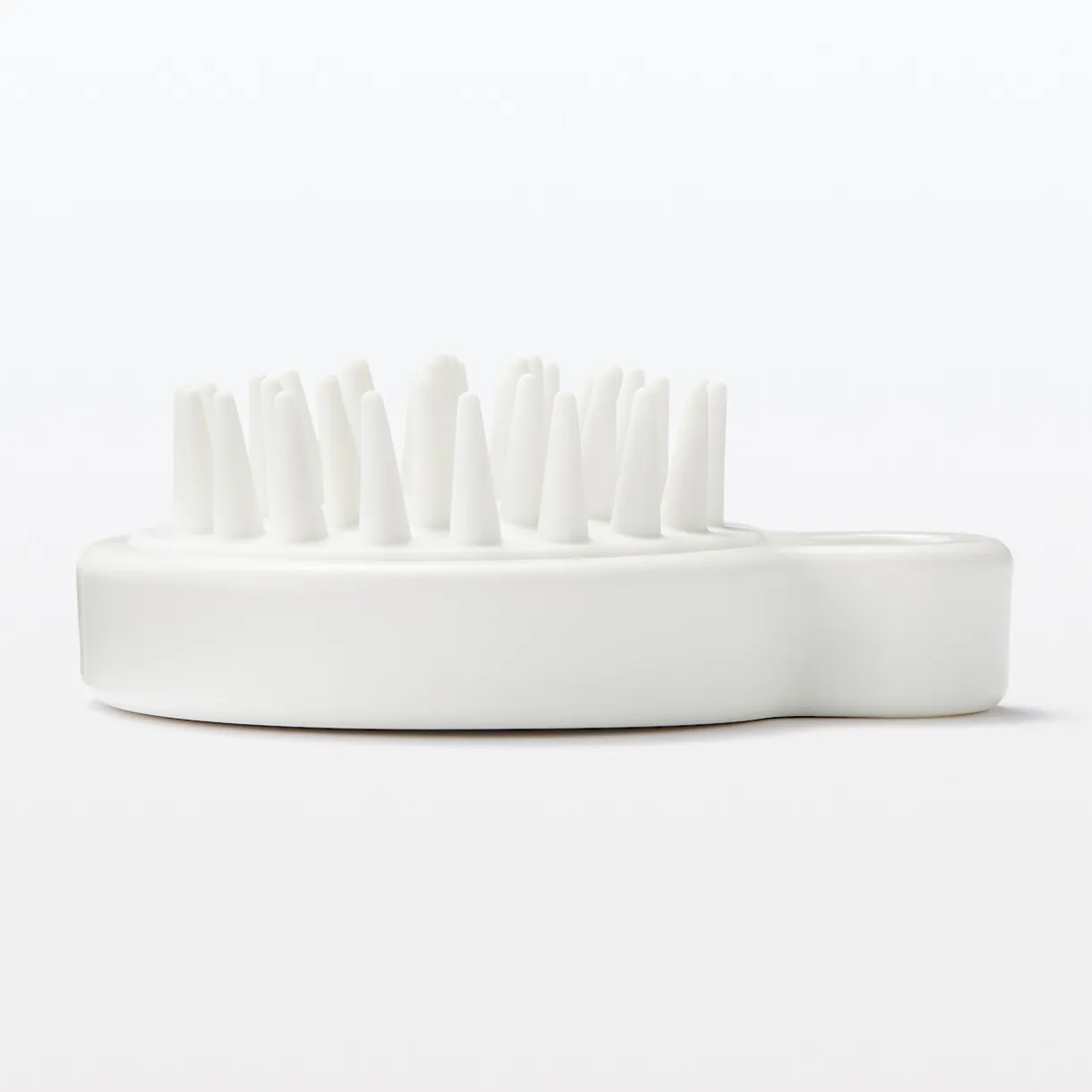 Brosse en polypropylène blanc pour masser et stimuler le cuir chevelu pendant le shampoing.