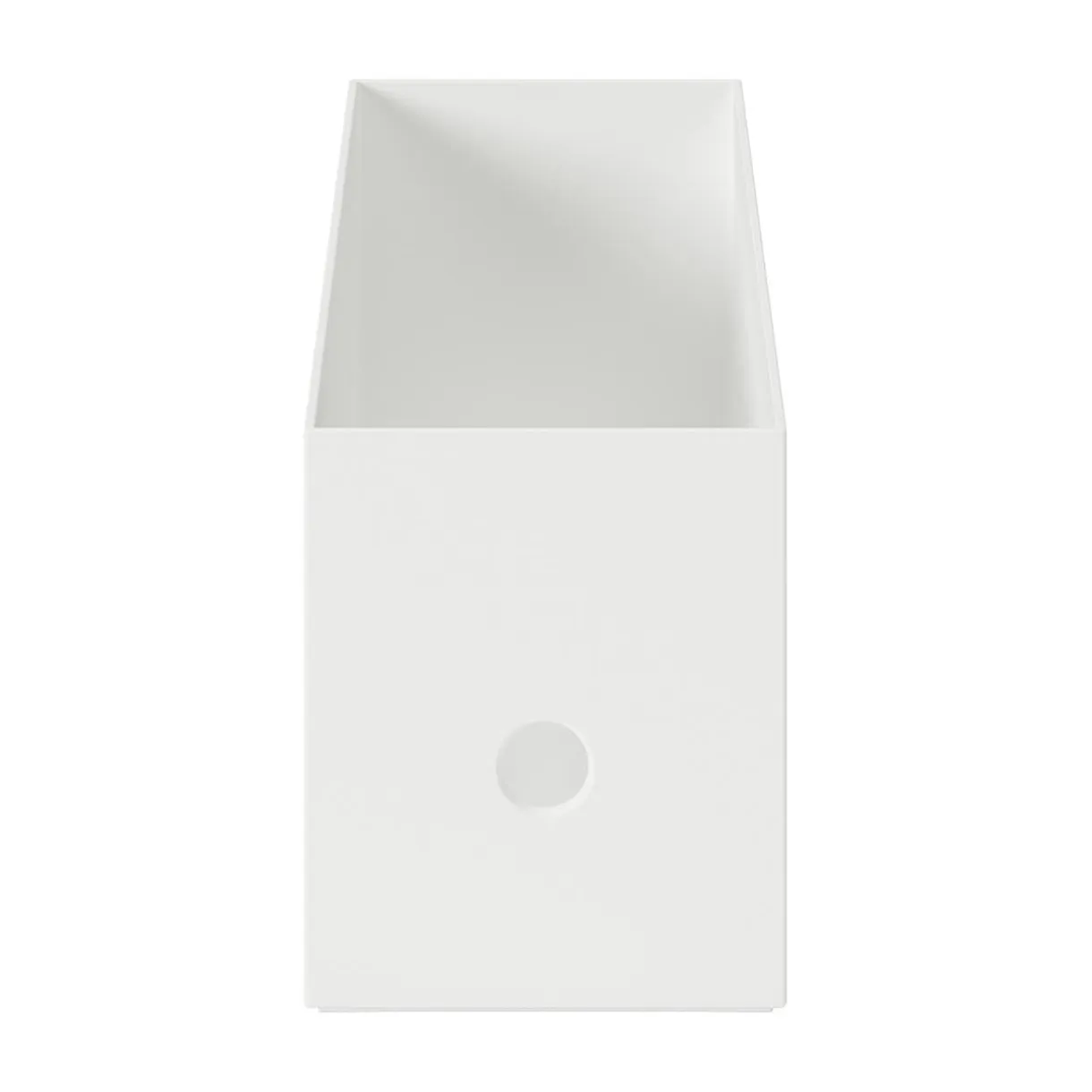 Deux fois moins haute qu’une boîte d’archives classique. Jusqu’à 3 boîtes peuvent être empilées.