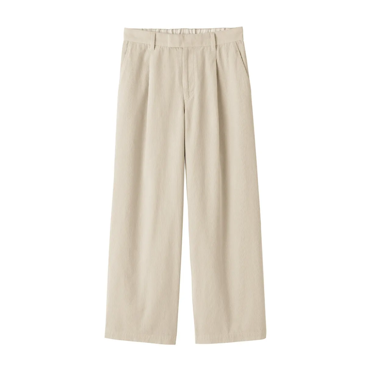 Une douceur naturelle, un confort durable. Ce pantalon à jambes larges, confectionné dans un velours côtelé mélangé à du kapok, est léger et respirant, avec des plis sur le devant pour plus de confort et une meilleure coupe.