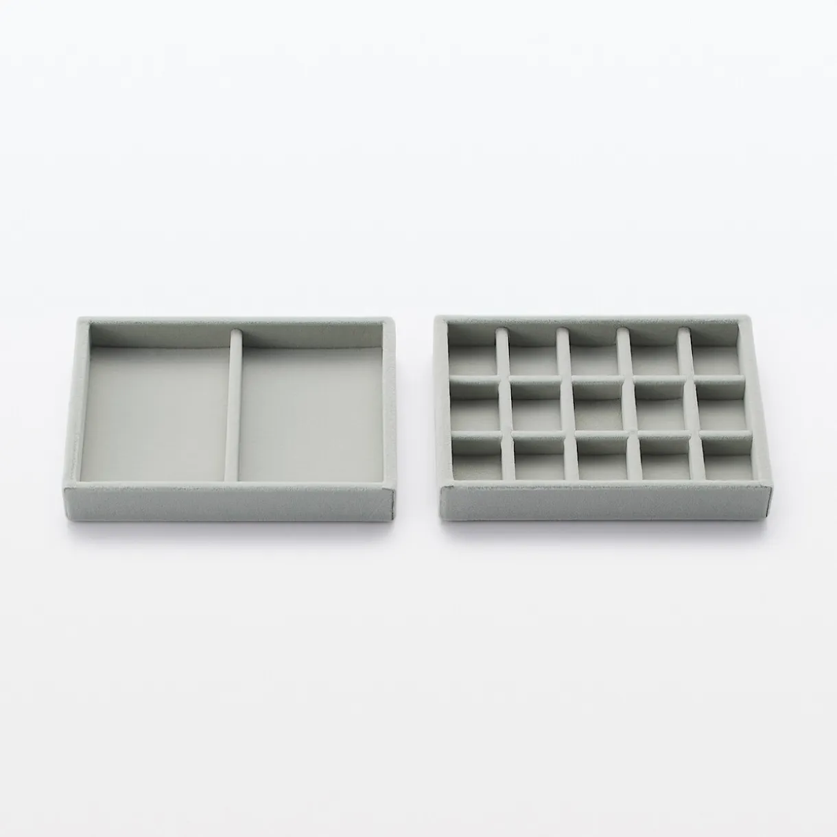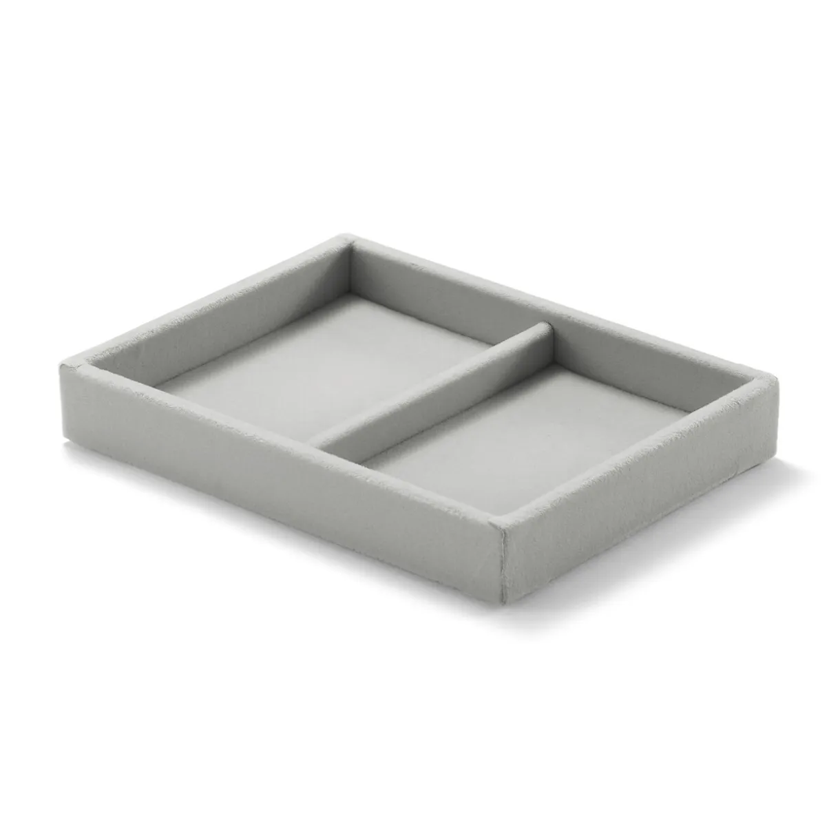 16 x 12 x 2.5cm. Plateau en velours gris pour bijoux, 2 compartiments, s’adapte dans les boîtes tiroirs en acrylique 2 tiroirs petites et grandes